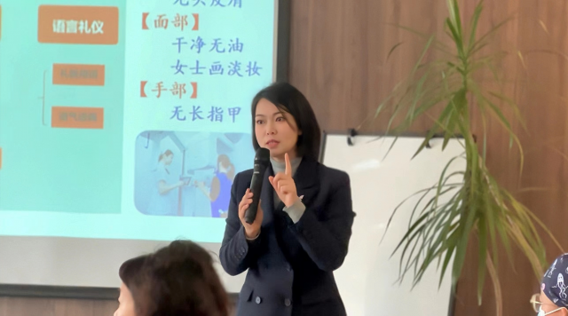 2月19日,学院旅游商务系韩莹教师工作室选派韩莹老师为南昌美亚口腔开展了礼仪培训,共有30余位医护人员参加了培训。