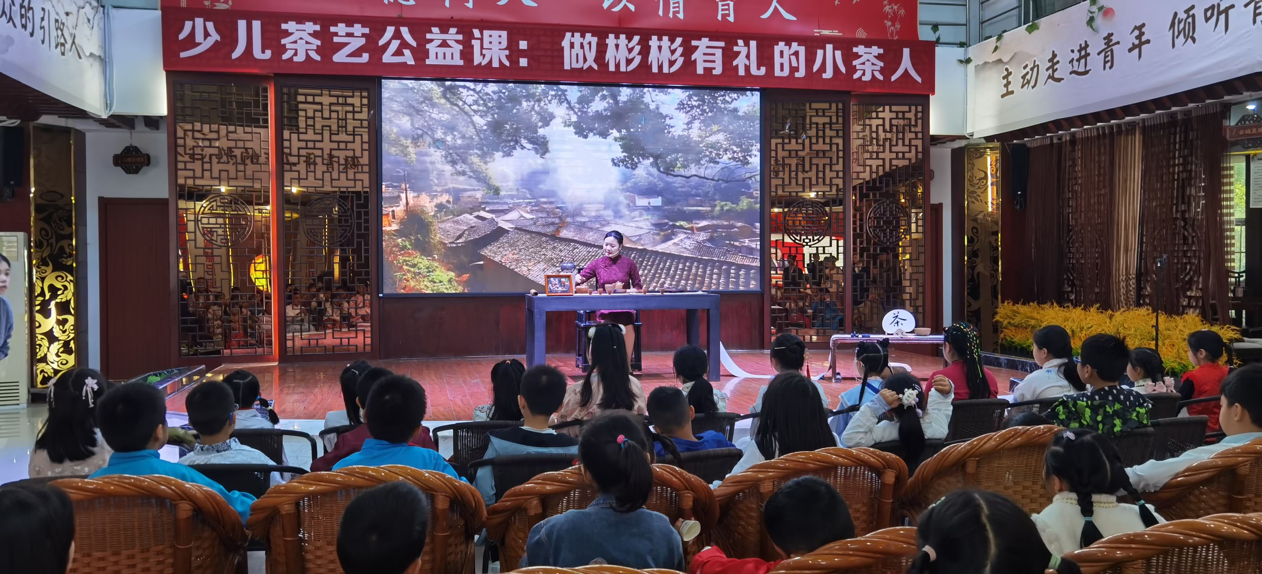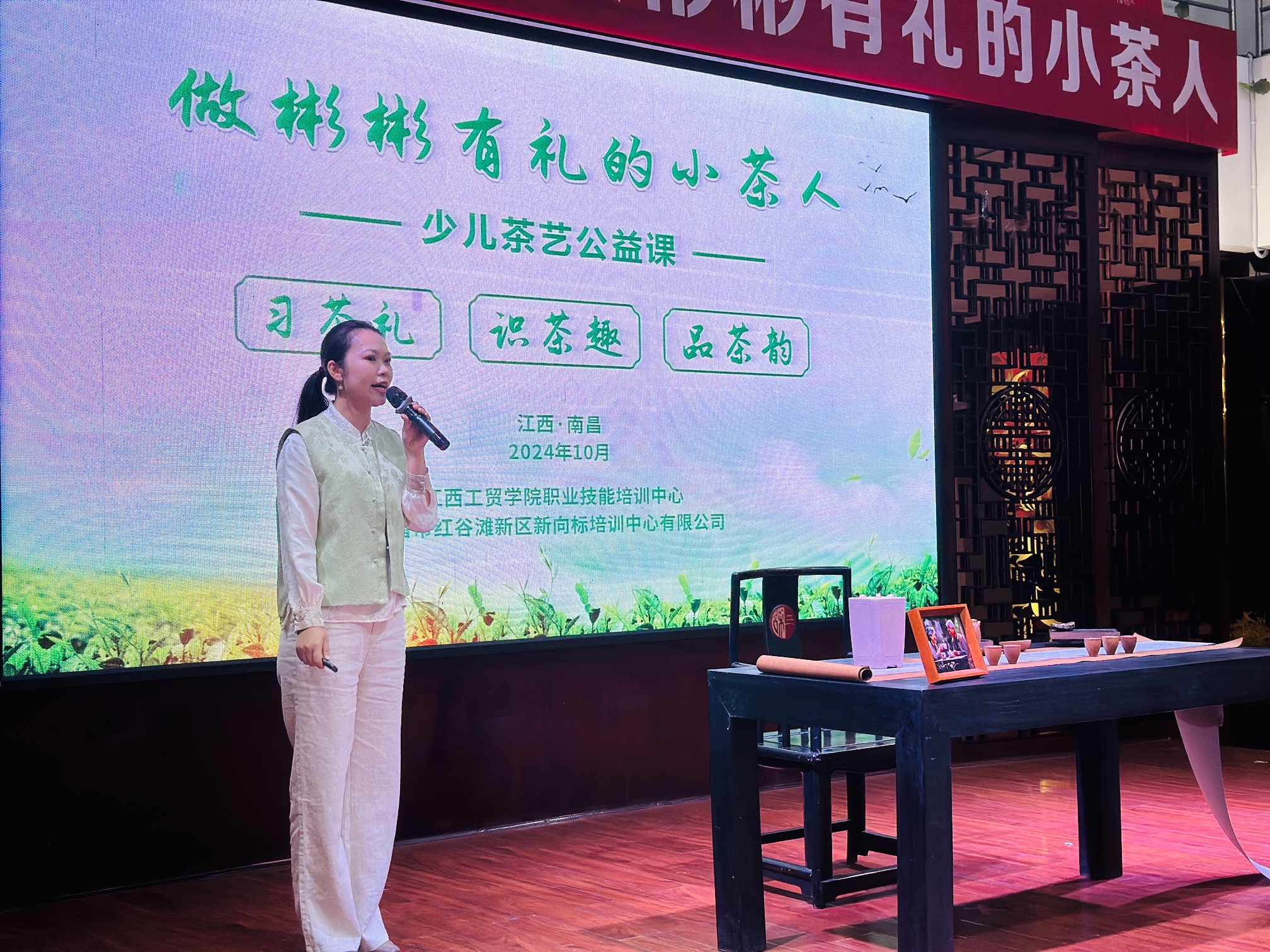 为培养小朋友对中国传统茶文化的兴趣,弘扬中国传统茶艺文化,2024年11月3日旅游商务系韩莹教师工作室为新向标少儿培训中心的小学员们开展了“做彬彬有礼的小茶人”为主题的茶艺公益课程。