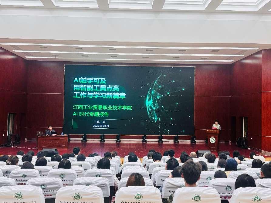 4月25日下午,以“AI时代 赋能工贸”为主题的专题讲座在我院图书馆报告厅举行。