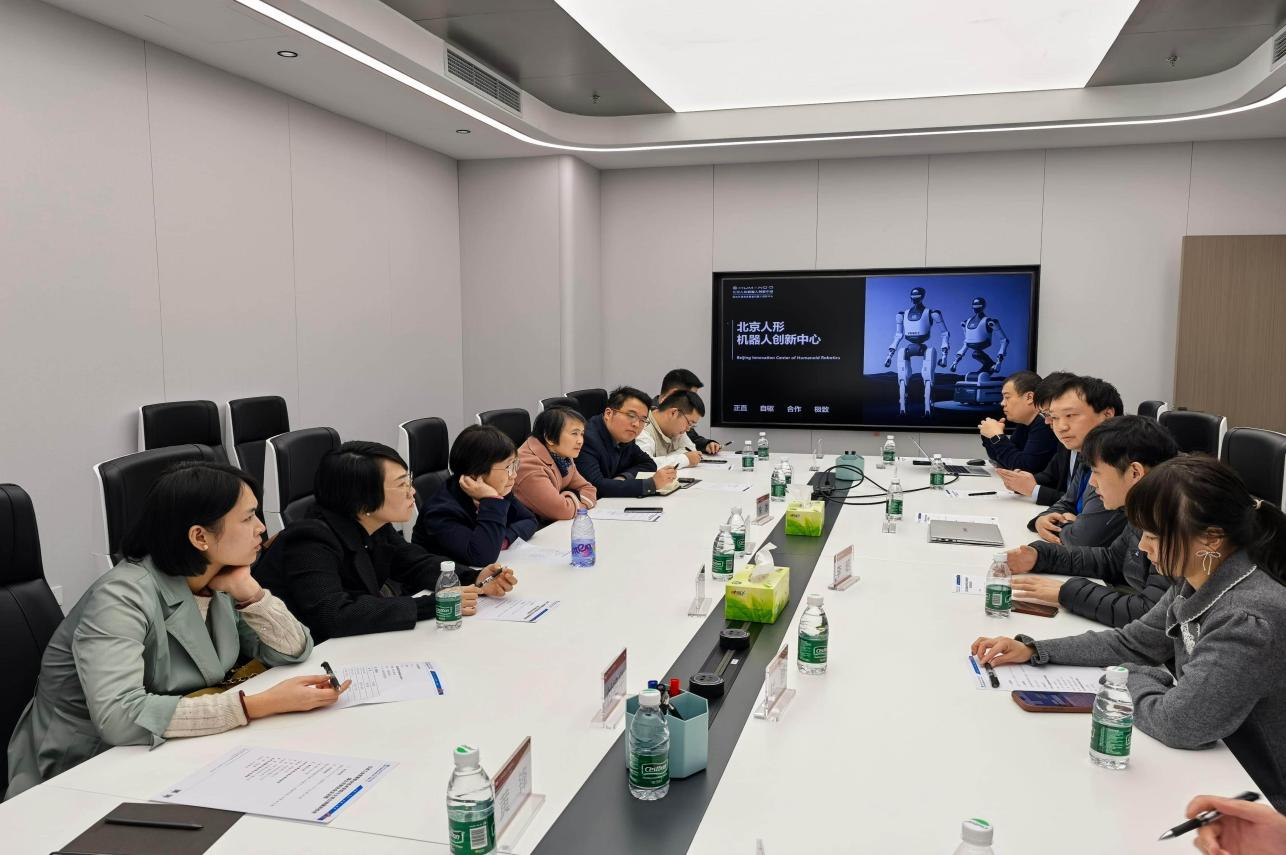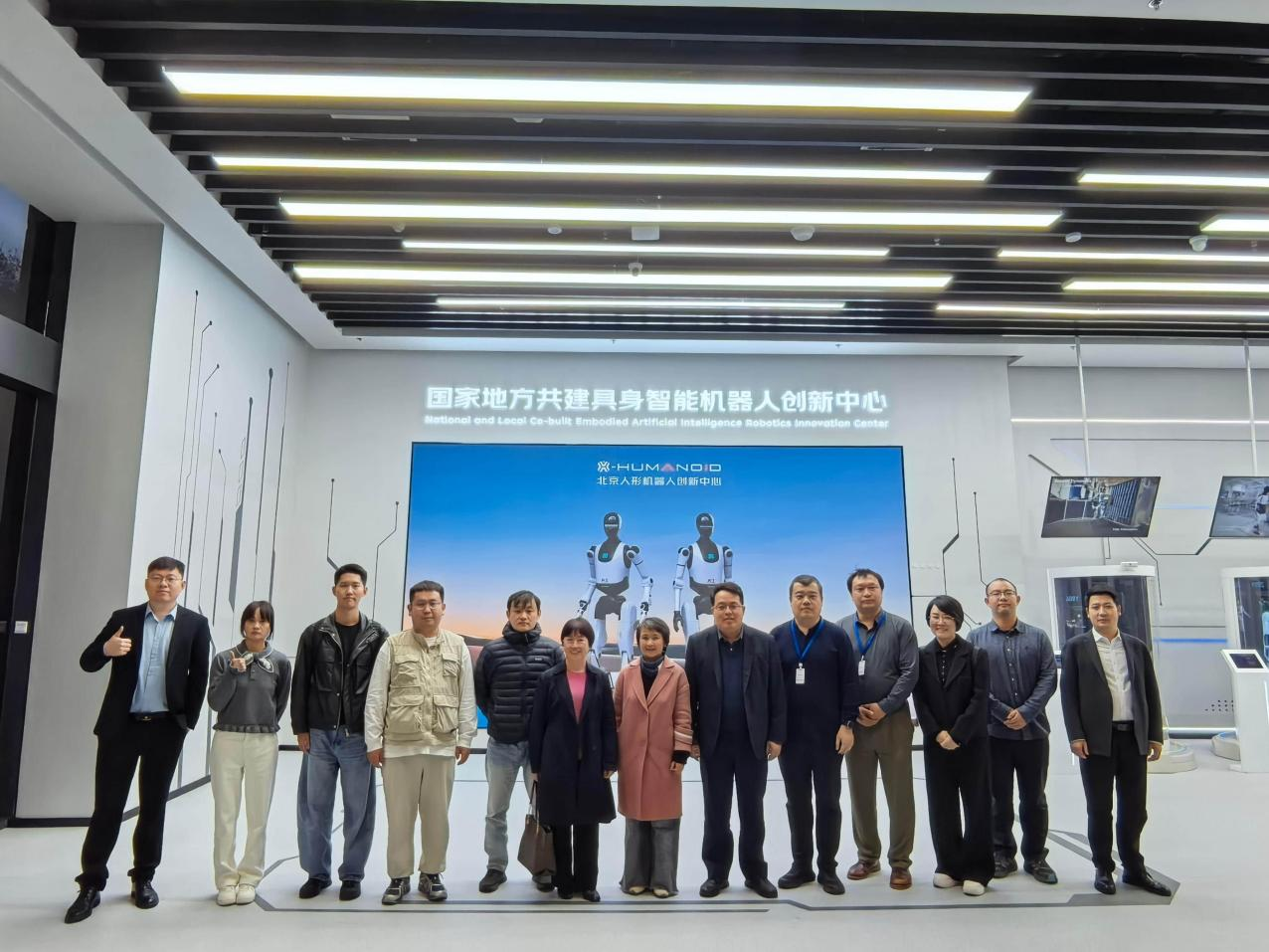 调研组先后走访了北京人形机器人创新中心、北京中科慧灵机器人技术有限公司、北京白海豚科技有限公司等多家机器人领域代表性研发机构与企业。通过深入企业展厅与研发中心一线,调研团队系统了解了机器人技术发展脉络,重点考察了工业机器人在智能制造、精密加工等场景中的实际应用,并就人形机器人等前沿技术方向与企业方进行了现场交流。